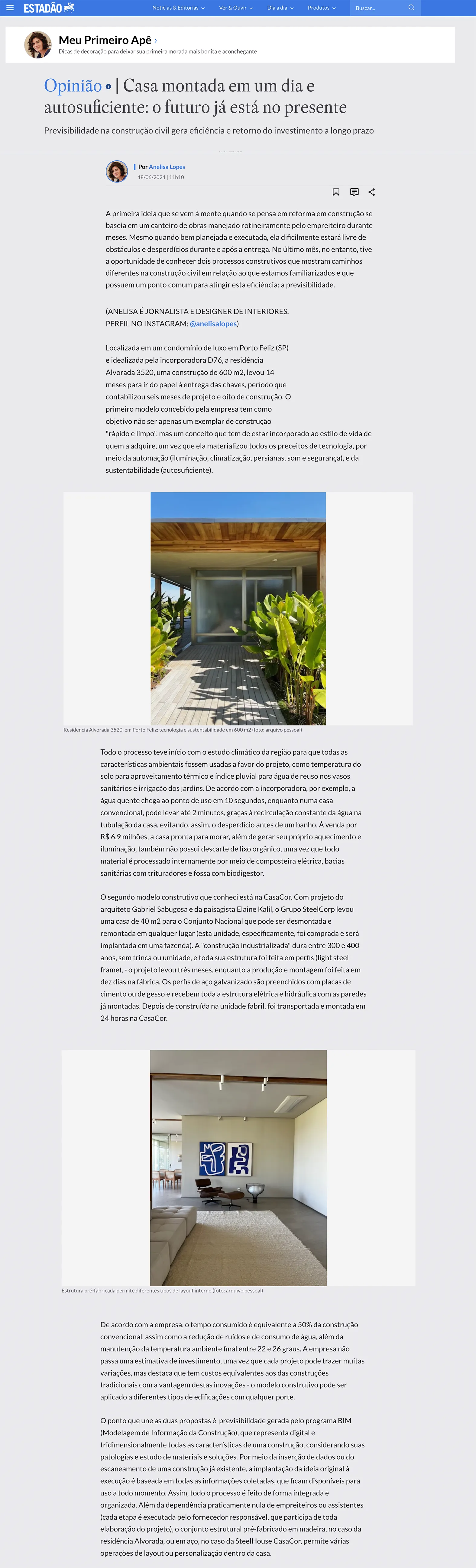 ESTADO DE SP Reportagem completa:https://www.estadao.com.br/emais/meu-primeiro-ape/casa-montada-em-um-dia-e-autosuficiente-o-futuro-ja-esta-no-presente/