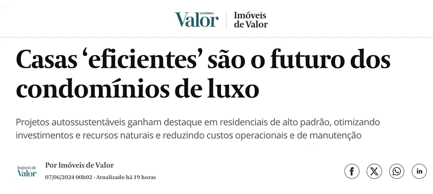 VALOR ECONÔMICO Reportagem completa:https://valor.globo.com/patrocinado/imoveis-de-valor/noticia/2024/06/07/casas-eficientes-sao-o-futuro-dos-condominios-de-luxo.ghtml